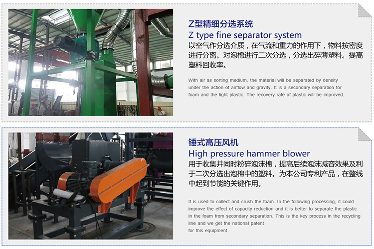 ● 能耗低。泡棉的抽取與破碎采用自主研發(fā)的專利設(shè)備—高壓錘片風機;