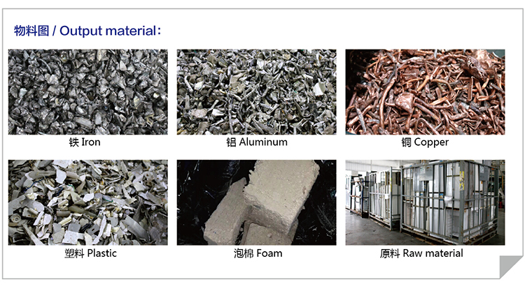 ● 特別適合大容量冰箱及冰柜的破碎回收,可自動分選出大部分帶皮電線;