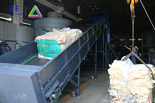 該設備適用于各種打包或成捆的農膜,噸袋等的預碎。 通常用于打包薄膜類回收解決方案的前端。 針對泥沙含量大的物料設計,能一次性將整包物料打散并剪切成均勻的尺寸,便于對泥沙進行預處理掉,減少后端主機的磨損。